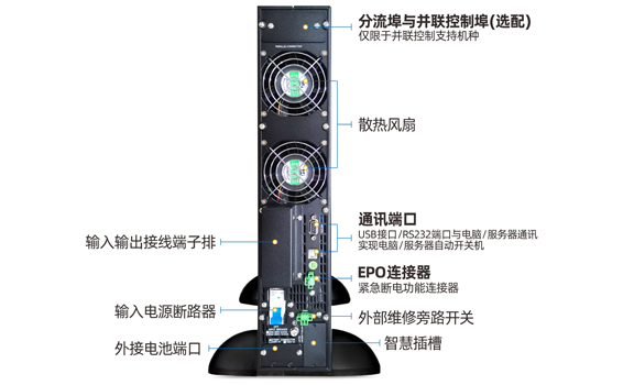 可安裝至普通的網絡機柜、服務器機柜等里面工作,節省空間。該機型占用空間高度為2U,內置蓄電池,停電后延時10分鐘左右。