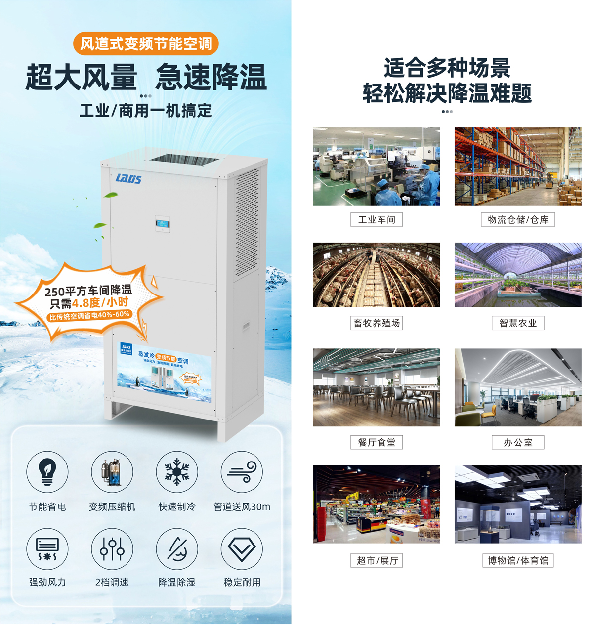 雷迪司管道送風(fēng)式蒸發(fā)冷變頻節(jié)能省電空調(diào)